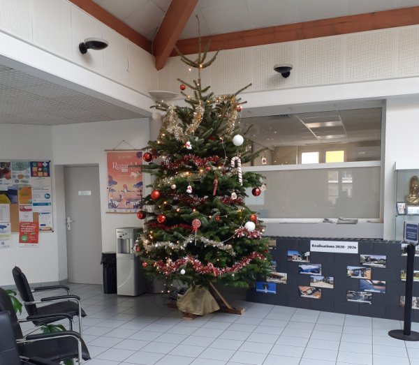 Après avoir trôné au marché de Noël, Arès Temps Libre a fait don de notre sapin à la municipalité afin qu'il poursuivre son exhibition dans le hall de notre mairie |